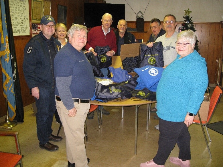 ON WEDNESDAY, DECEMBER 10, 2025, TEN VOLUNTEERS (Ron Genovese, John Kirk, Tom Kirk, ED AND SONJA MEJAC, BOB MILLS, DIANE POTOCNIK, MIKE RIDENOUR, LARRY STERK, and MARTY TOMINC) MET AT THE POST TO STUFF LOAD THE “GOODY BAGS” FOR THE VETERANS AT THE VA DOMICILIARY.  THEY THEN DELIVERED THE BAGS TO THE DOMICILIARY AND DISTRIBUTED THEM TO THE VETERANS. MANY OF THE VETERANS WERE VERY GRATEFUL FOR THE COLORING CONTEST PICTURES INCLUDED IN THE BAGS. WHAT A WORTHWHILE PROGRAM!